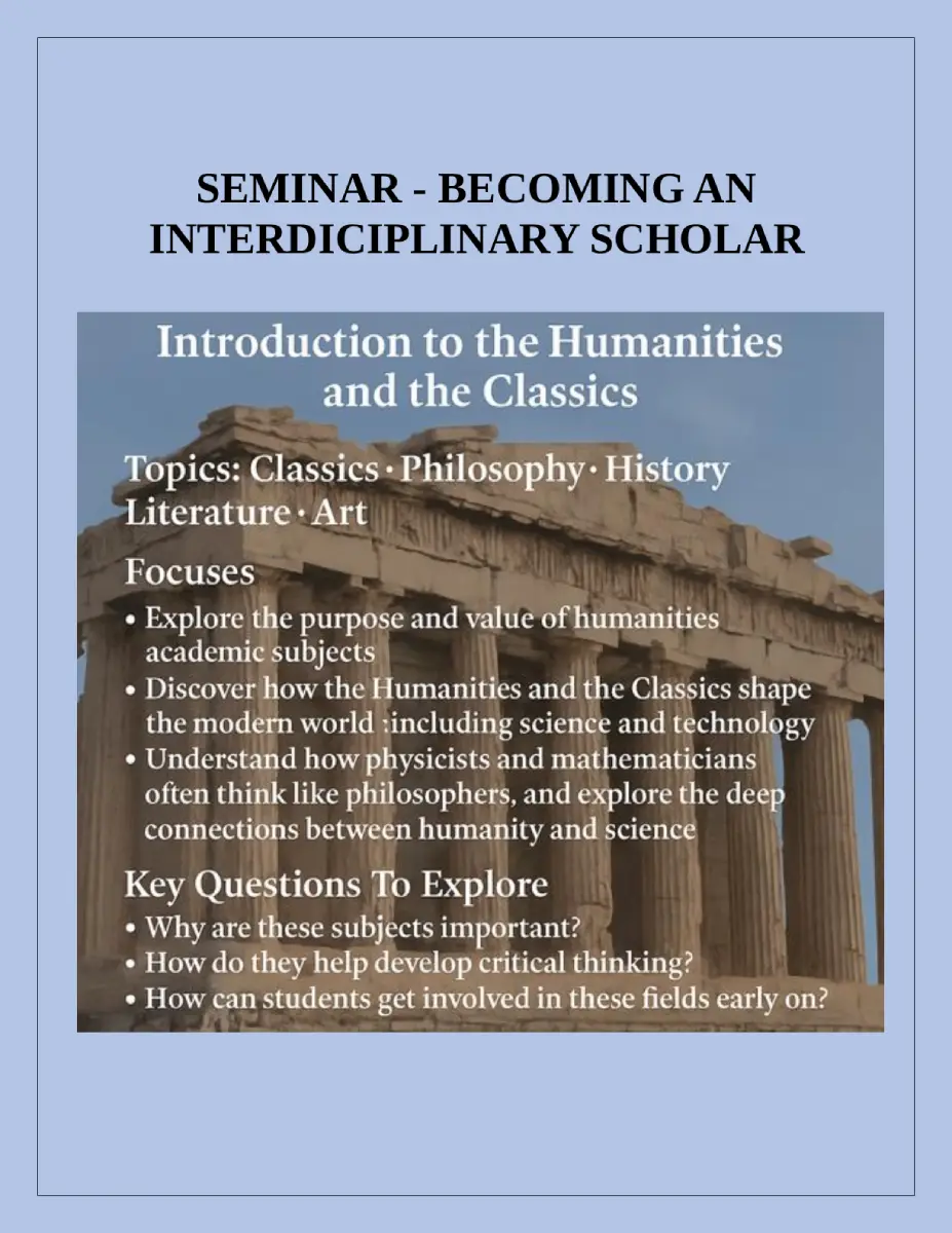 Seminar: Becoming an Interdisciplinary Scholar - Introduction to the Humanities and the Classics